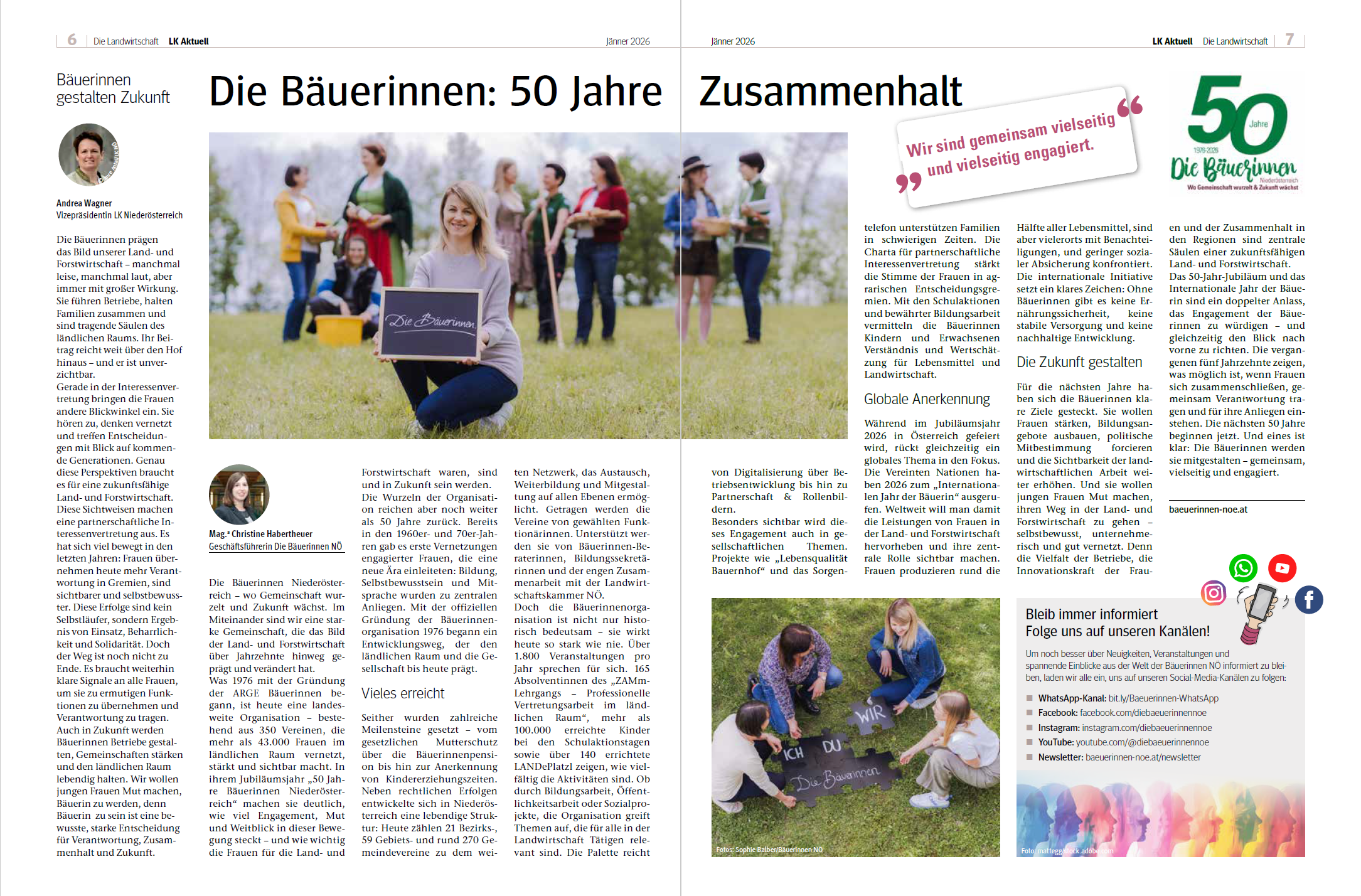 Das 50-Jahr-Jubiläum und das Internationale Jahr der Bäuerin bilden damit einen doppelten Anlass, das Engagement der Bäuerinnen zu feiern – und gleichzeitig den Blick nach vorne zu richten. Die vergangenen fünf Jahrzehnte zeigen, was möglich ist, wenn Frauen sich zusammenschließen, gemeinsam Verantwortung tragen und für ihre Anliegen einstehen. Die nächsten 50 Jahre beginnen jetzt. Und eines ist klar: Die Bäuerinnen Niederösterreichs werden sie mitgestalten – gemeinsam, vielseitig und engagiert.