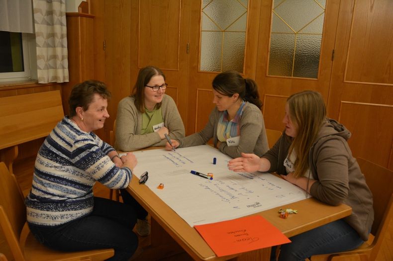 Nur zuhören das geht nicht - aktiv mitarbeiten - ist das Motto aller anwesenden Bäuerinnen. Deshalb wurden Teams gebildet und darin Wünsche, Beschwerden und Ideen für die neue Funktionsperiode erarbeitet und anschließend präsentiert. Mit einem positiven Nebeneffekt, denn dabei lernten sich manche Bäuerinnen auch gleich besser kennen.