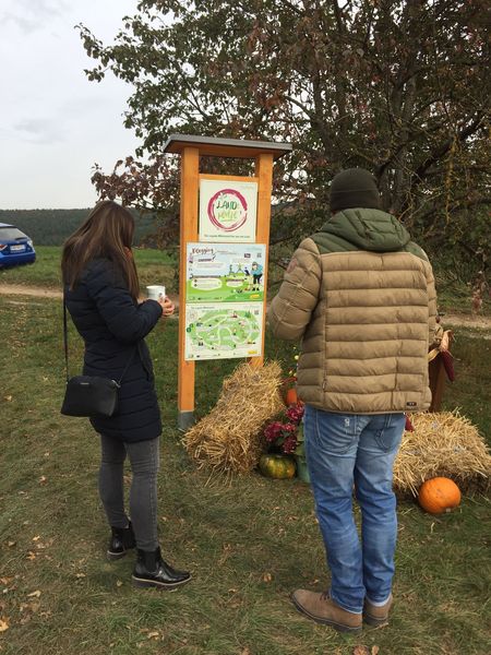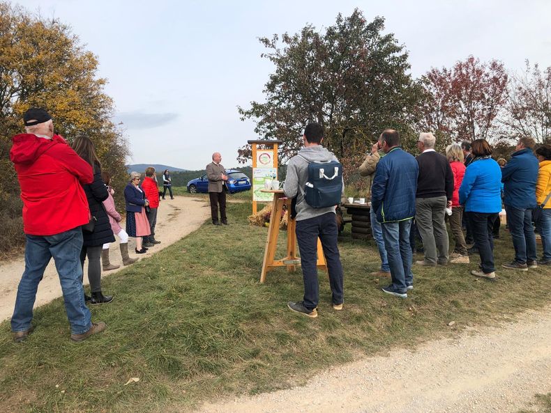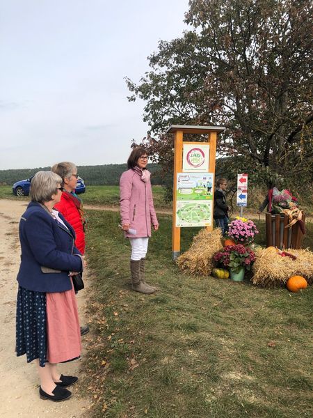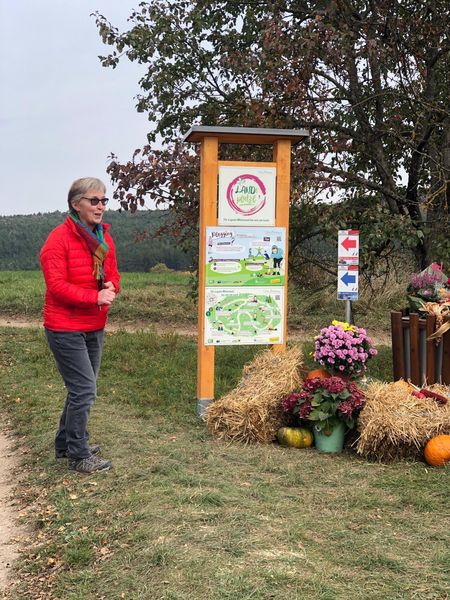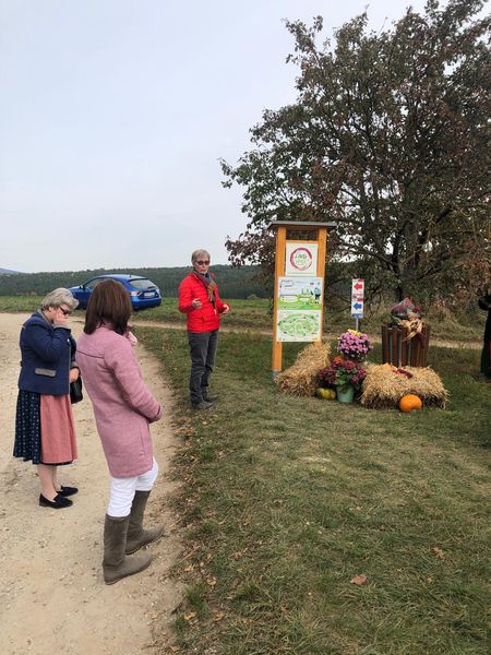Die Landesbäuerin Stellvertreterin erklärte den Anwesenden die Projekttafeln und wies darauf hin, wie wichtig es ist, die Natur sauber zu halten.